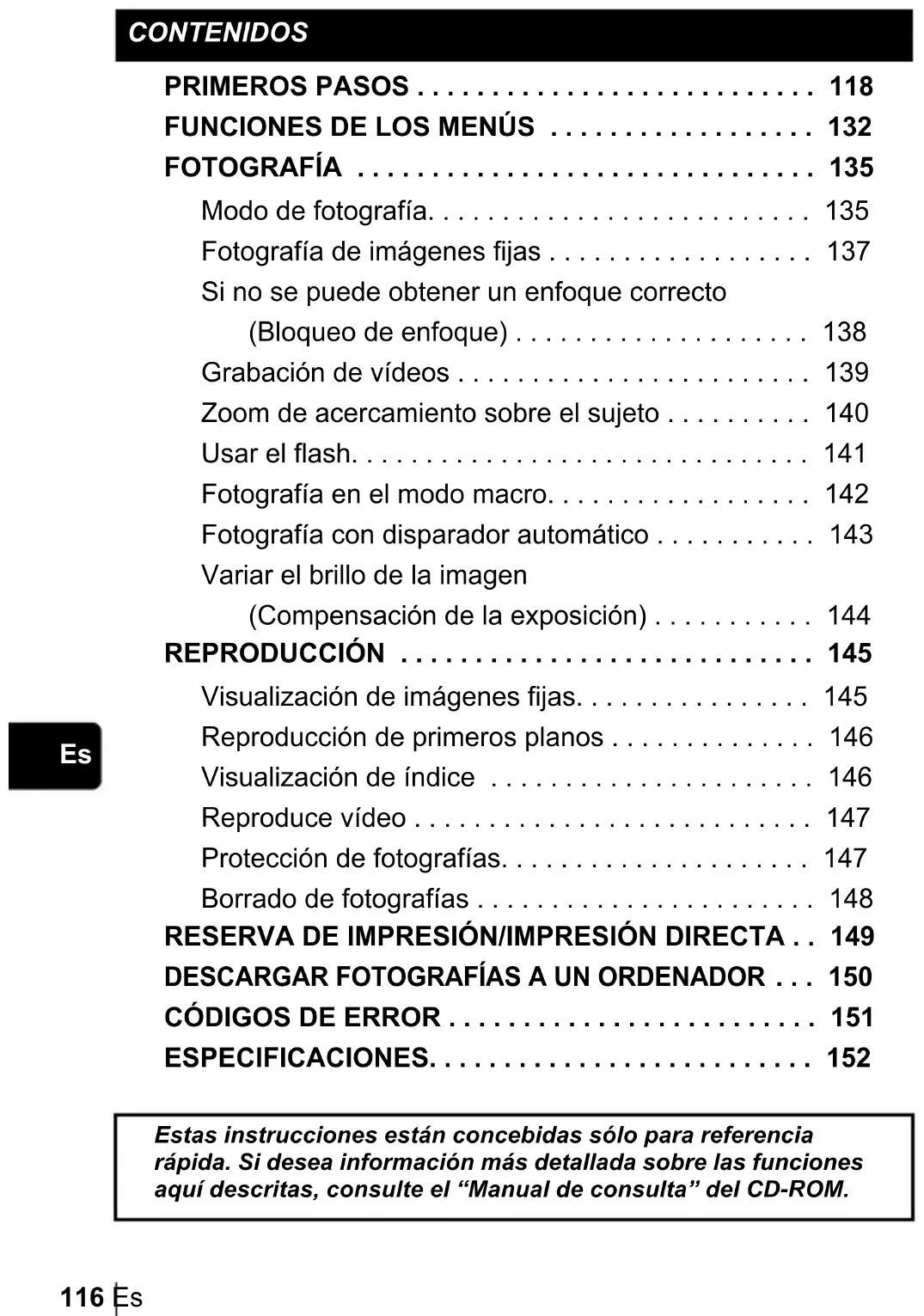 ESPECIFICACIONES. . . . . . . . . . . . . . . . . . . . . . . . . . 152 Estas instrucciones están concebidas sólo para referencia rápida. Si desea información más detallada sobre las funciones aquí descritas, consulte el “Manual de consulta” del CD-ROM. x450_Basic.book 116 ページ 2004年8月2日 月曜日 午前9時36分Es 117