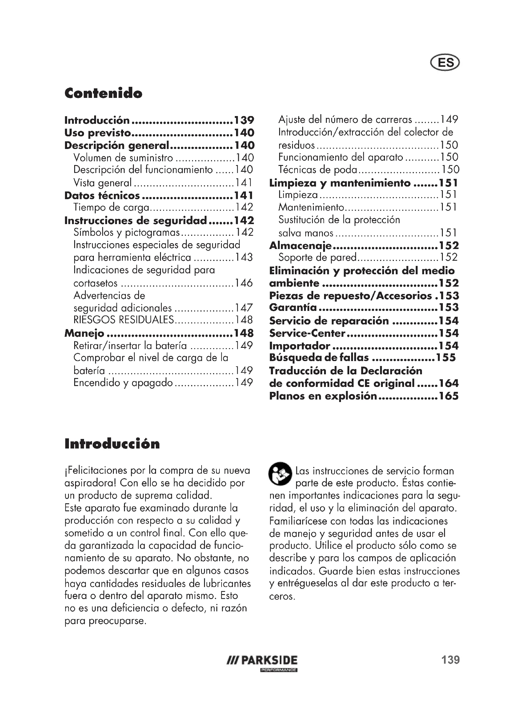 MANUAL DE USUARIO PPHSA 40Li A1 PARKSIDE