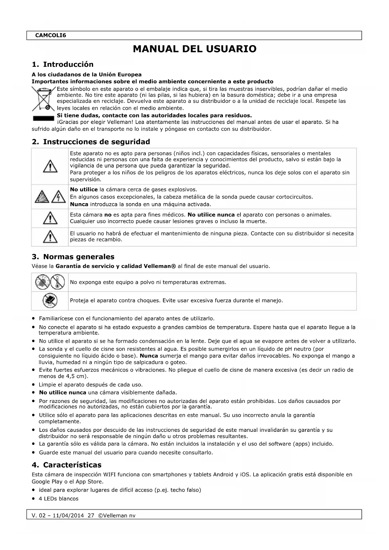 CAMCOLI6 - Sin categoría VELLEMAN - Manual de uso y guía de instrucciones gratis