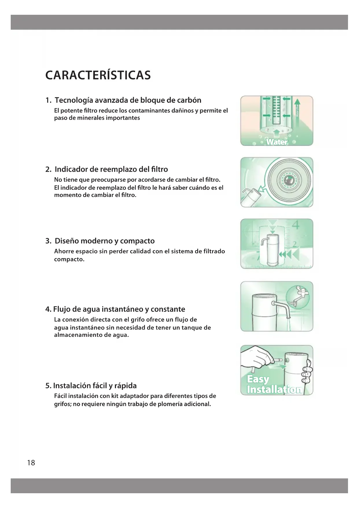 Fácil instalación con kit adaptador para diferentes tipos de grifos; no requiere ningún trabajo de plomería adicional. Water Easy Installation19 ¡GRACIAS POR SU COMPRA! ÍNDICE