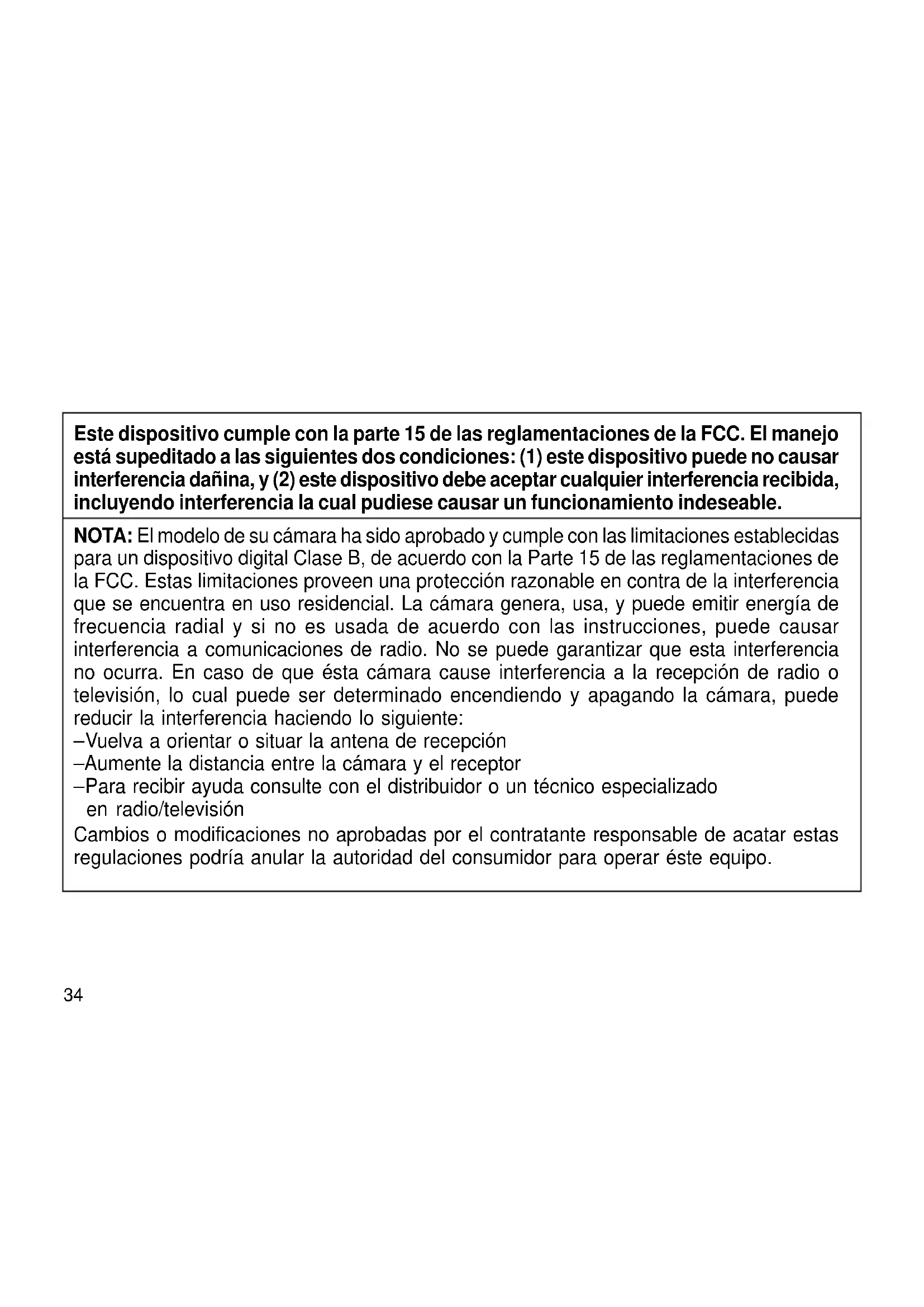 - Proteja la cámara del polvo, humedad, golpe repentino, y calor excesivo. PRECAUCIÓN: No use solventes o soluciones ásperas o abrasivas en el cuerpo de la cámara.