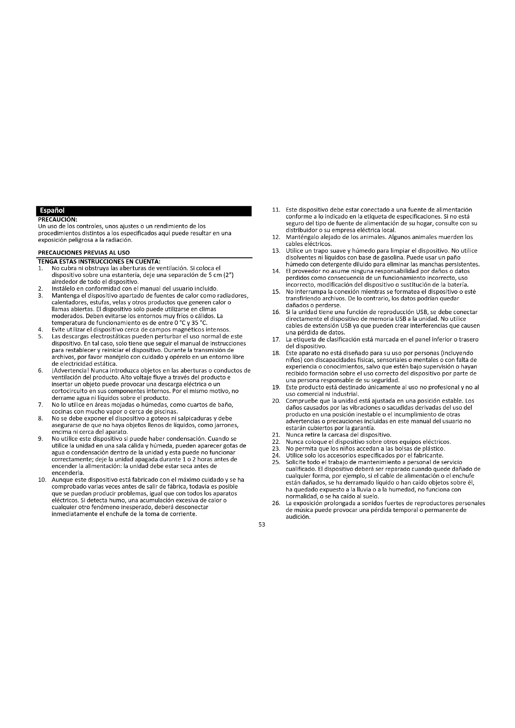 22. Nunca coloque el dispositivo sobre otros equipos eléctricos.