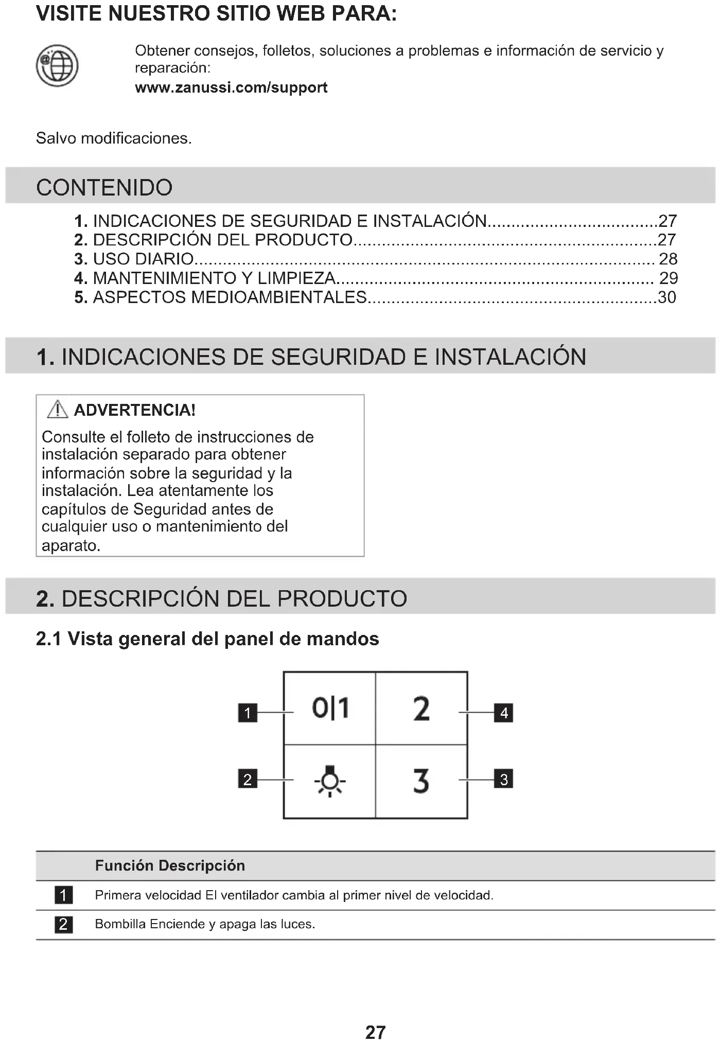 1. INDICACIONES DE SEGURIDAD E INSTALACIÓN....................................27