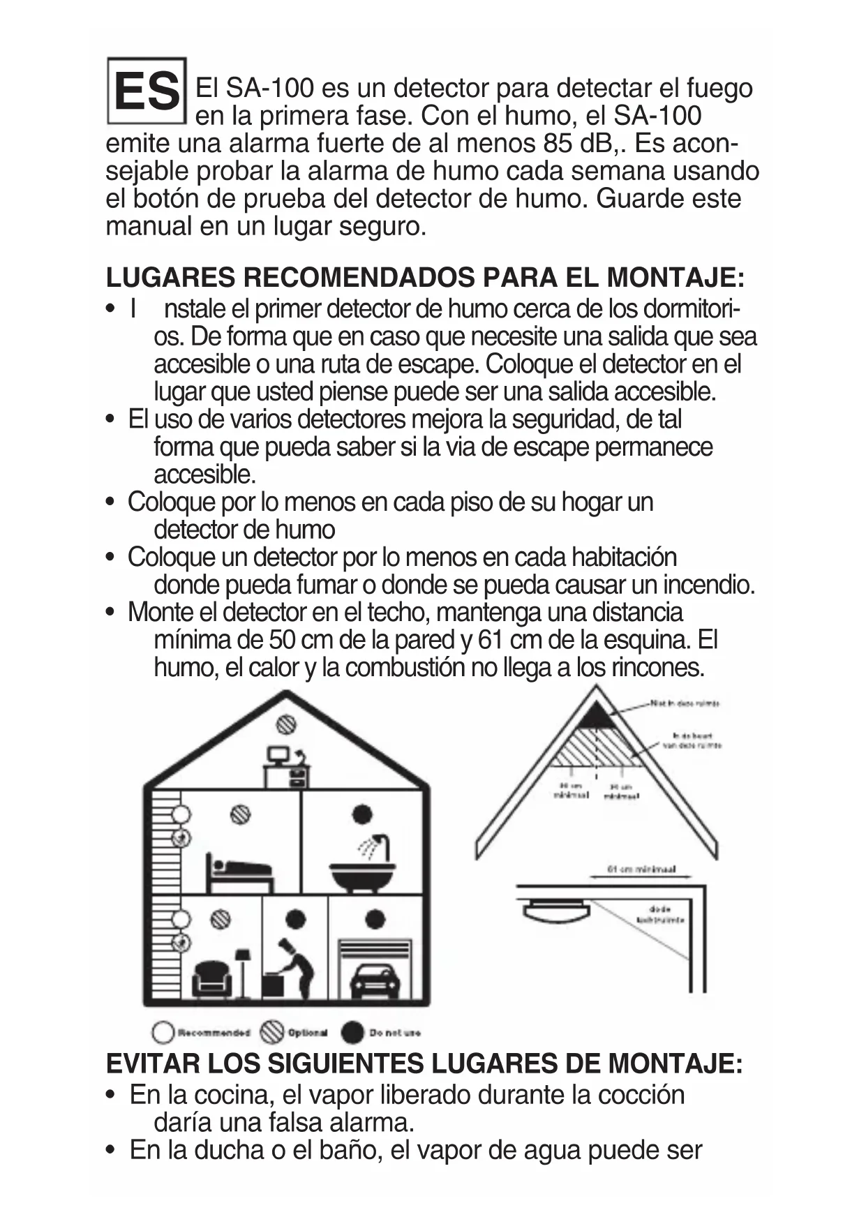 - I nstale el primer detector de humo cerca de los dormitori- os. De forma que en caso que necesite una salida que sea accesible o una ruta de escape. Coloque el detector en el lugar que usted piense puede ser una salida accesible.