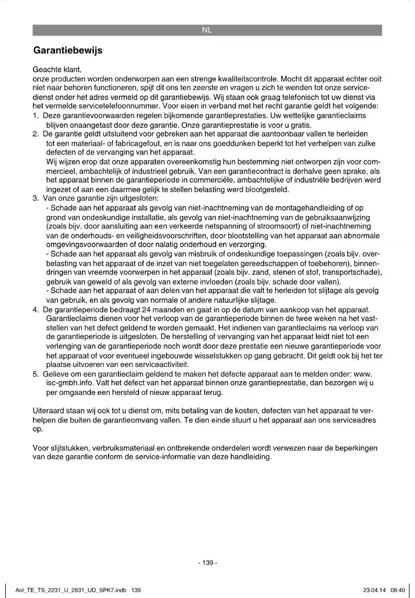 5. Para hacer efectivo su derecho a garantía, registre su aparato defectuoso en: www.isc-gmbh.info. Si