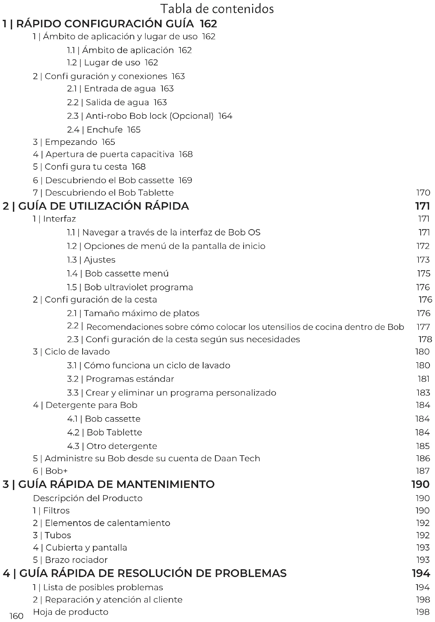 5 | Administre su Bob desde su cuenta de Daan Tech 186 6 | Bob+ 187