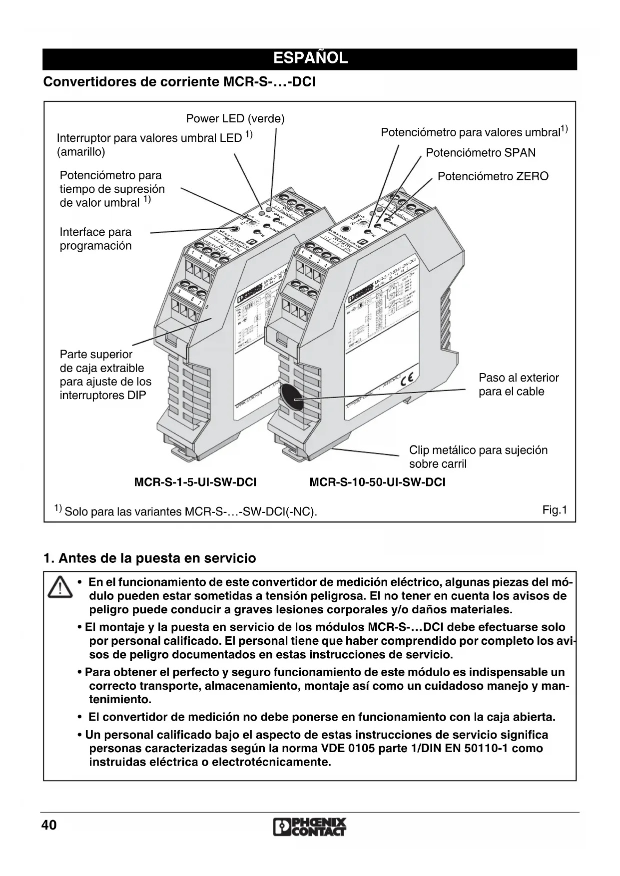 - El montaje y la puesta en servicio de los módulos MCR-S-…DCI debe efectuarse solo por personal calificado. El personal tiene que haber comprendido por completo los avi- sos de peligro documentados en estas instrucciones de servicio.