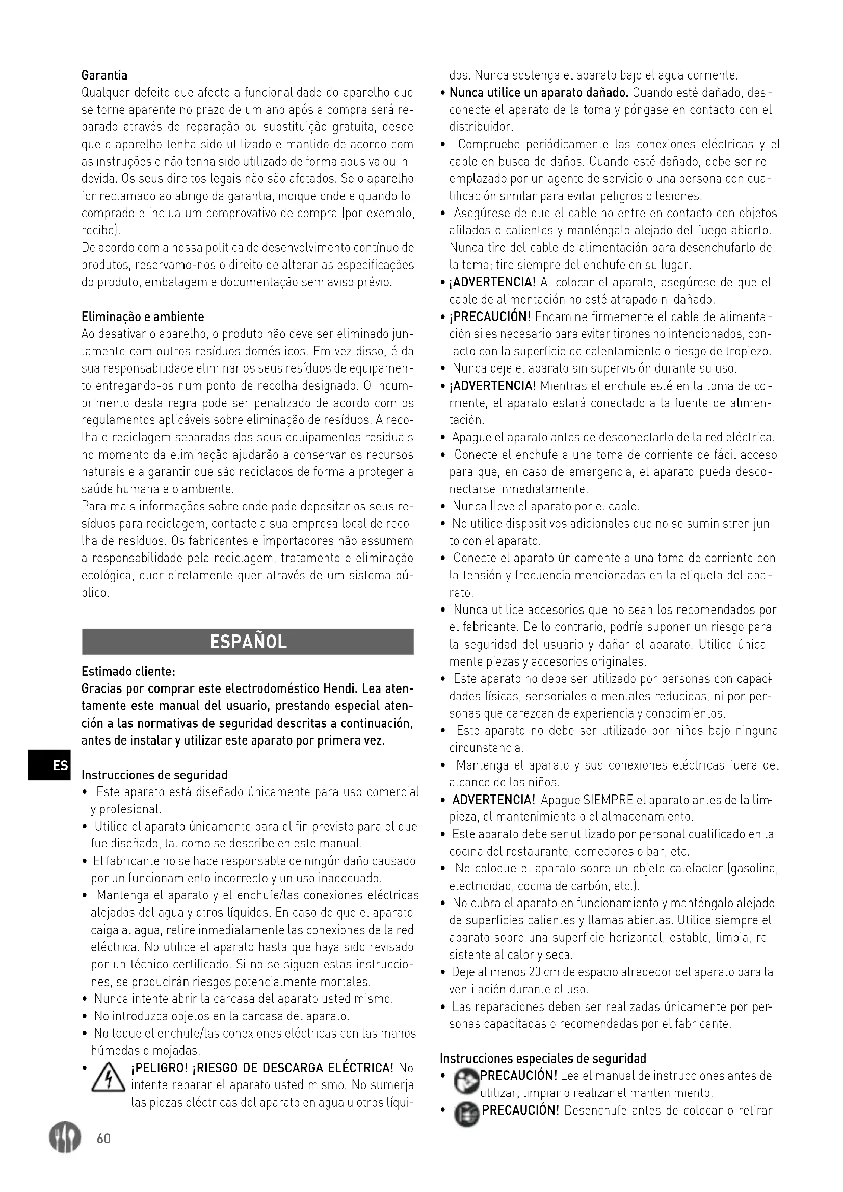 portadores no asumen responsabilidad alguna por el reciclaje, el tratamiento y la eliminación ecológica, ya sea directamente o a través de un sistema público. SLOVENSKÝ Vážený zákazník, Ďakujeme, že ste si zakúpili tento spotrebič Hendi. Pred inšta