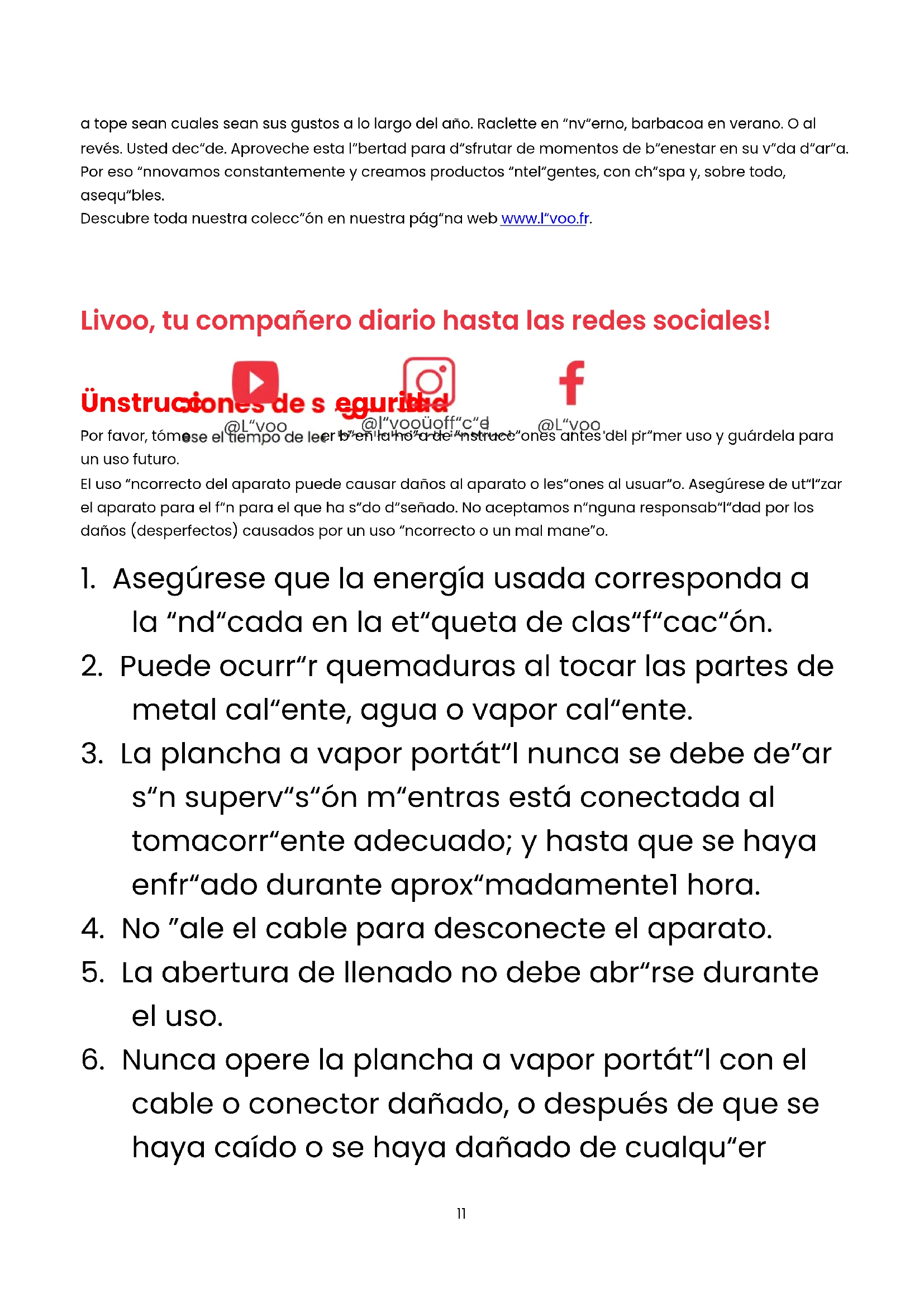 Gracias por haber elegido un producto Livoo! Su batidora, su barbacoa, sus auriculares no son simples objetos, son una extensión de usted que le permite conectar con su gente, reunirla, reír e interactuar. El objetivo de Livoo es ayudarle a vivir su vida ES11 a tope sean cuales sean sus gustos a lo largo del año. Raclette en invierno, barbacoa en verano. O al revés. Usted decide. Aproveche esta libertad para disfrutar de momentos de bienestar en su vida diaria. Por eso innovamos constantemente y creamos productos inteligentes, con chispa y, sobre todo, asequibles. Descubre toda nuestra colección en nuestra página web www.livoo.fr.