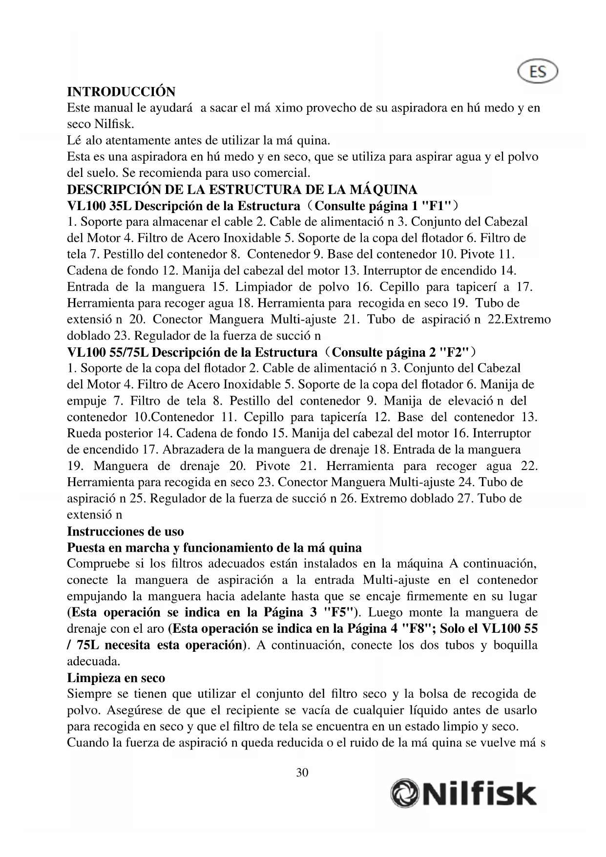 MANUAL DE USUARIO VL100 NILFISK