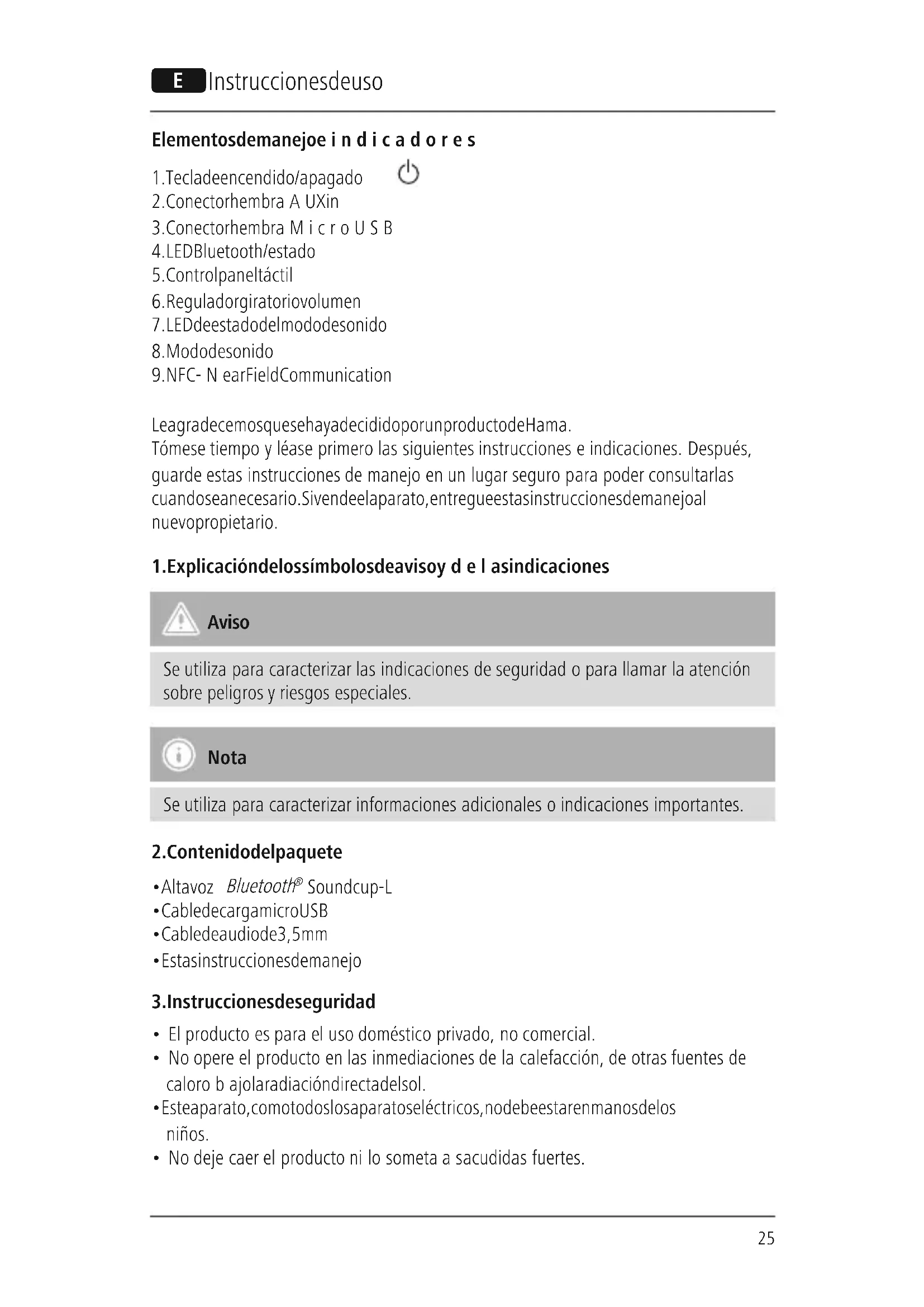 Le agradecemos que se haya decidido por un producto de Hama. Tómese tiempo yléase primerolas siguientes instrucciones eindicaciones. Después, guarde estas instrucciones de manejo en un lugar seguroparapoder consultarlas cuando sea necesario. Si vende el aparato, entregue estas instrucciones de manejo al nuevo propietario.