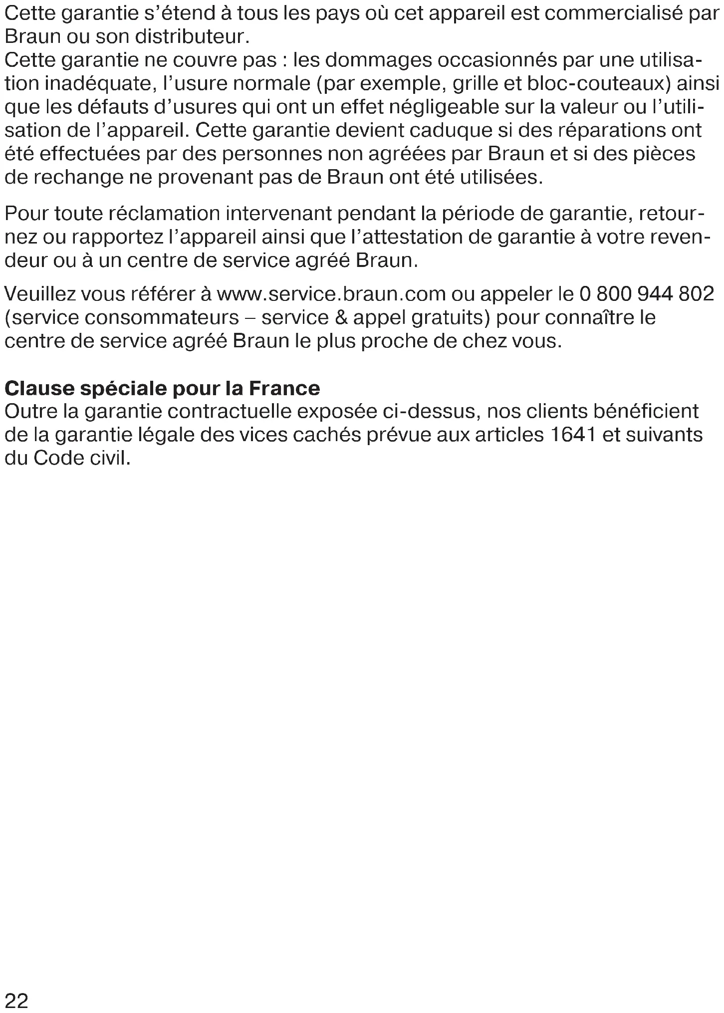 - Para mantener el rendimiento de la recortadora, lubríquela regularmente con aceite lubricante suave (no incluido). Normas de protección del medio ambiente Este producto contiene baterías y/o componentes eléctricos reciclables. Para proteger el medio ambiente, no deseche este apa- rato con los residuos domésticos al final de su vida útil. En su lugar, entréguelo en algún punto de recogida y reciclaje de residuos eléctri- cos disponible en su localidad. Sujeto a modificaciones sin previo aviso. Garantía Braun concede a este producto 2 años de garantía a partir de la fecha de compra. Dentro del periodo de garantía, subsanaremos, sin cargo alguno, cualquier defecto del aparato imputable tanto a los materiales como a la fabricación, ya sea reparando, sustituyendo piezas, o facilitando un aparato nuevo según nuestro criterio. Dependiendo de la disponibilidad, el recambio podría resultar de un color diferente o de un modelo equivalente. La garantía no ampara averías por uso indebido, funcionamiento a distinto voltaje del indicado, conexión a un enchufe inadecuado, rotura, uso o desgaste normal (p. ej. la lámina o bloque de cuchillas), así como defectos que supongan una disminución insignificante en el valor o funcionamiento del producto. 90012280_Type5542_BT_7350_7340_7330_7320_5365_5360_5342_5340_MN_ANZ.indd 2690012280_Type5542_BT_7350_7340_7330_7320_5365_5360_5342_5340_MN_ANZ.indd 26 13.09.21 09:1913.09.21 09:1927 La garantía perderá su efecto en caso de que se hayan realizado reparaciones por personas no autorizadas, o si no se han utilizado recambios originales de Braun. La garantía solamente tendrá validez si la fecha de compra es confirmada mediante la factura o el albarán de compra correspondiente. Esta garantía tiene validez en todos los países donde este producto sea distribuido por Braun o por un distribuidor asignado por Braun. En caso de reclamación bajo esta garantía, diríjase al Servicio de Asistencia Técnica Braun más cercano: www.service.braun.com. Solo para España Servicio al consumidor: Para localizar su Servicio Braun más cercano o en el caso de que tenga alguna duda referente al funcionamiento de este producto, le rogamos contacte con el servicio de atención al cliente: