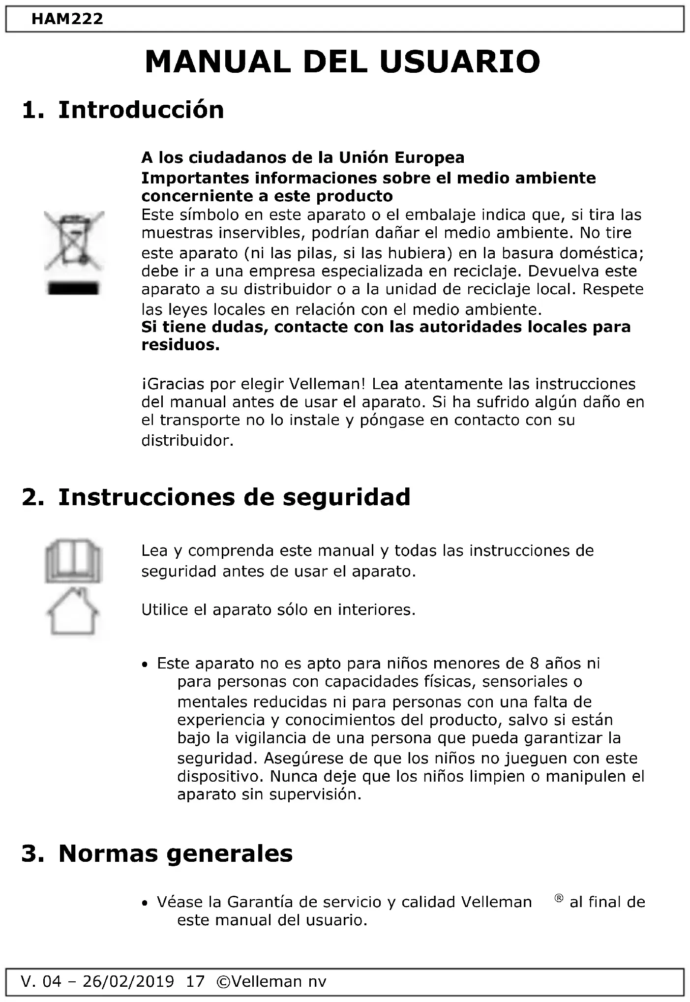 MANUAL DE USUARIO HAM222 VELLEMAN