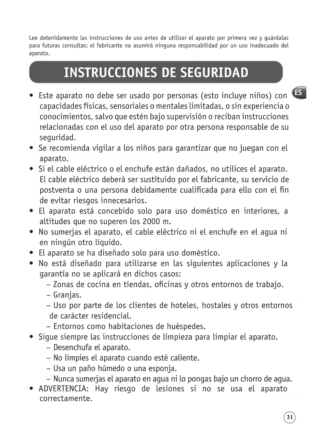 INSTRUCCIONES DE SEGURIDAD