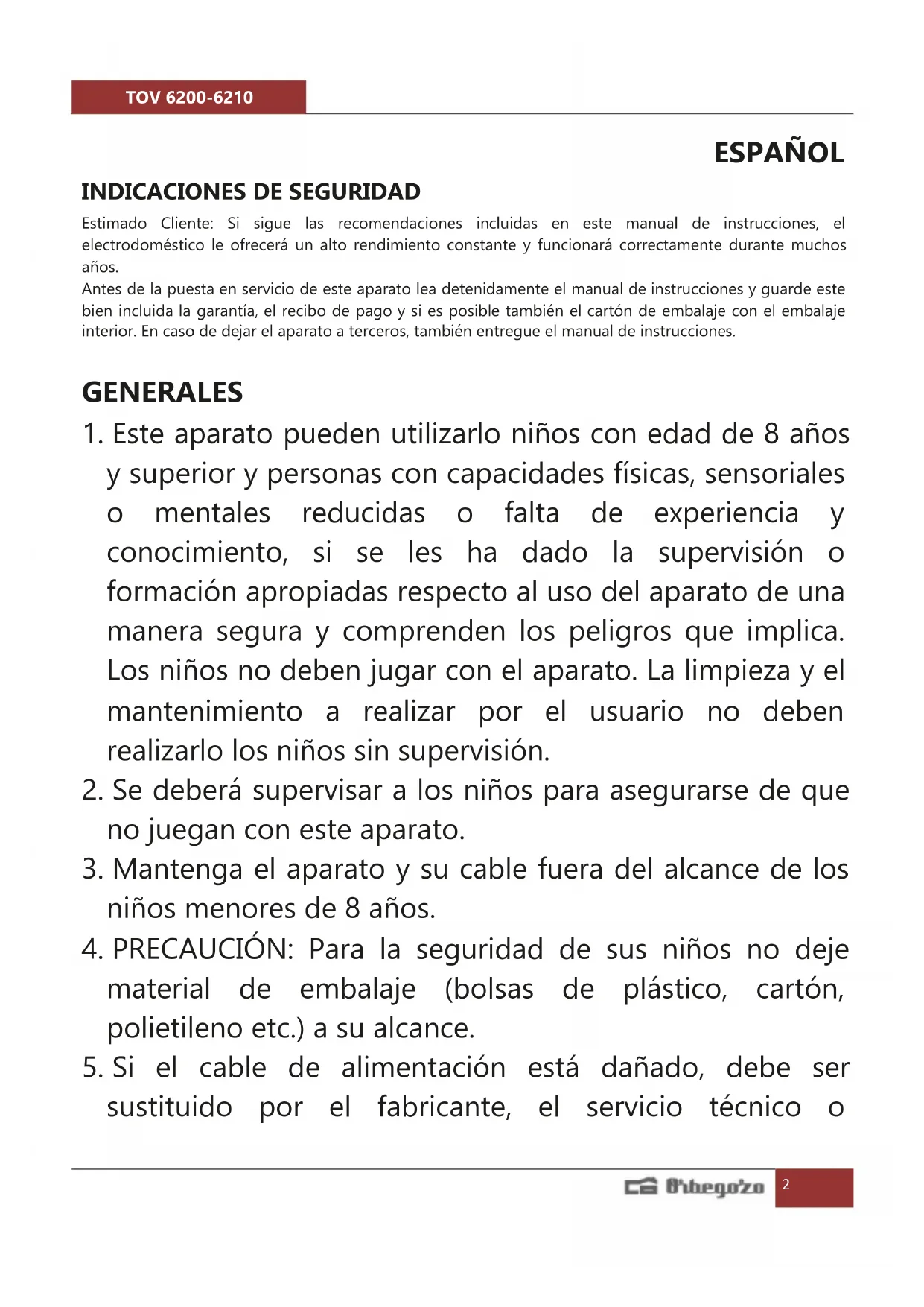 MANUAL DE USUARIO TOV 6210 Orbegozo