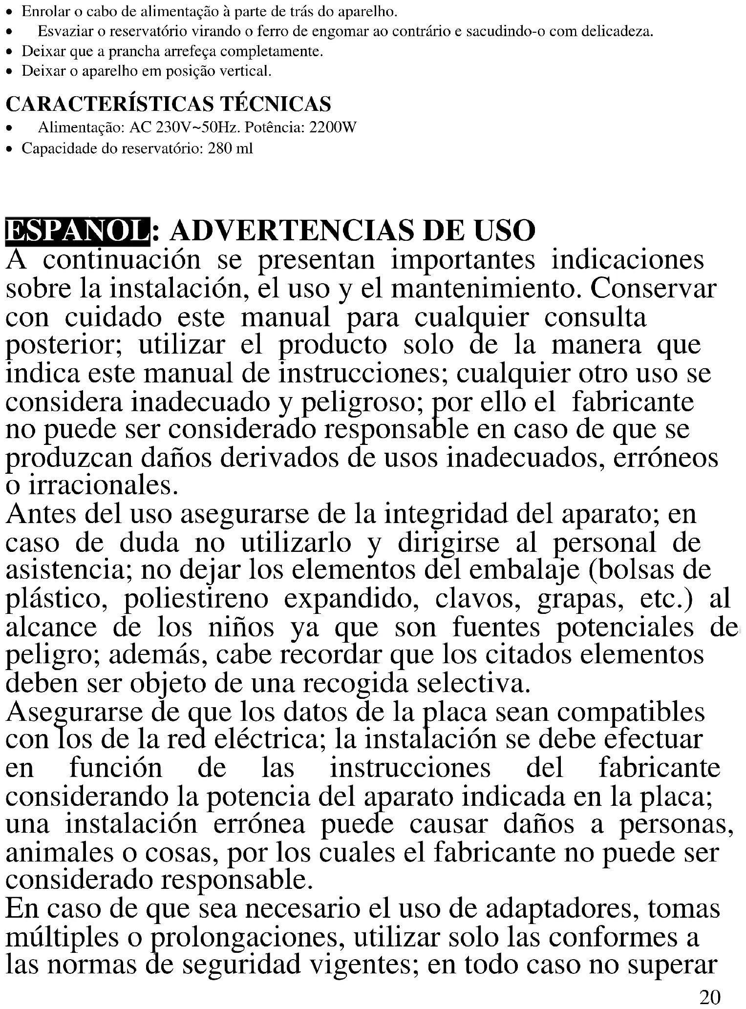 ESPAÑOL: ADVERTENCIAS DE USO