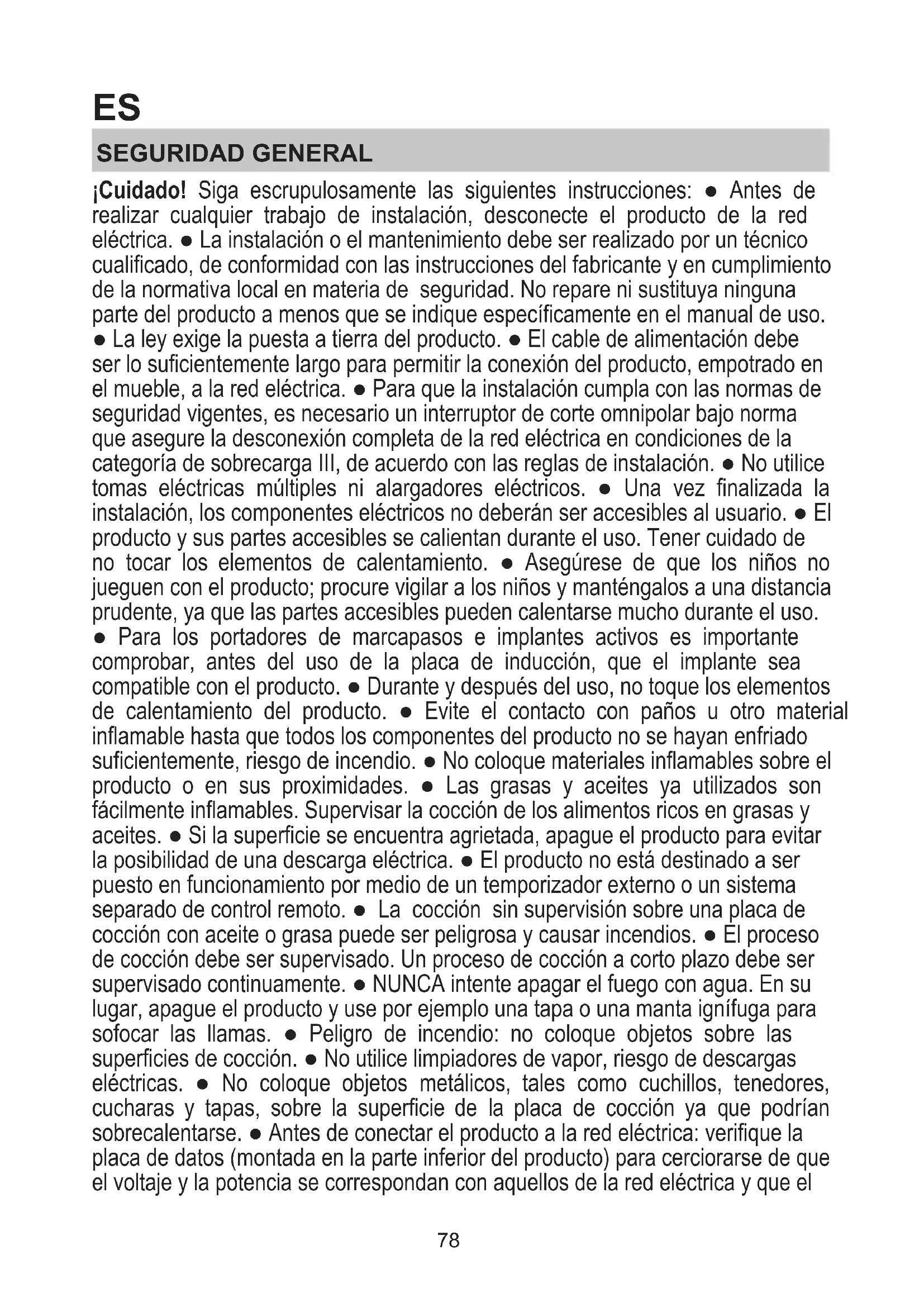 Todas las funciones de esta placa de cocción están diseñadas para cumplir con las más estrictas normas de seguridad. Por esta razón: Este manual describe las principales funciones, utilizar el código QR de las primeras páginas para acceder, en Internet, a las instrucciones completas. Todas las funciones de esta placa de cocción cumplen con las más estrictas normas de seguridad. Por esta razón:
