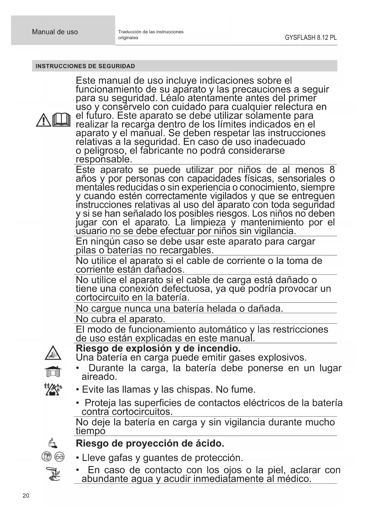 Manual de uso GYSFLASH 8.12 PL Traducción de las instrucciones originales