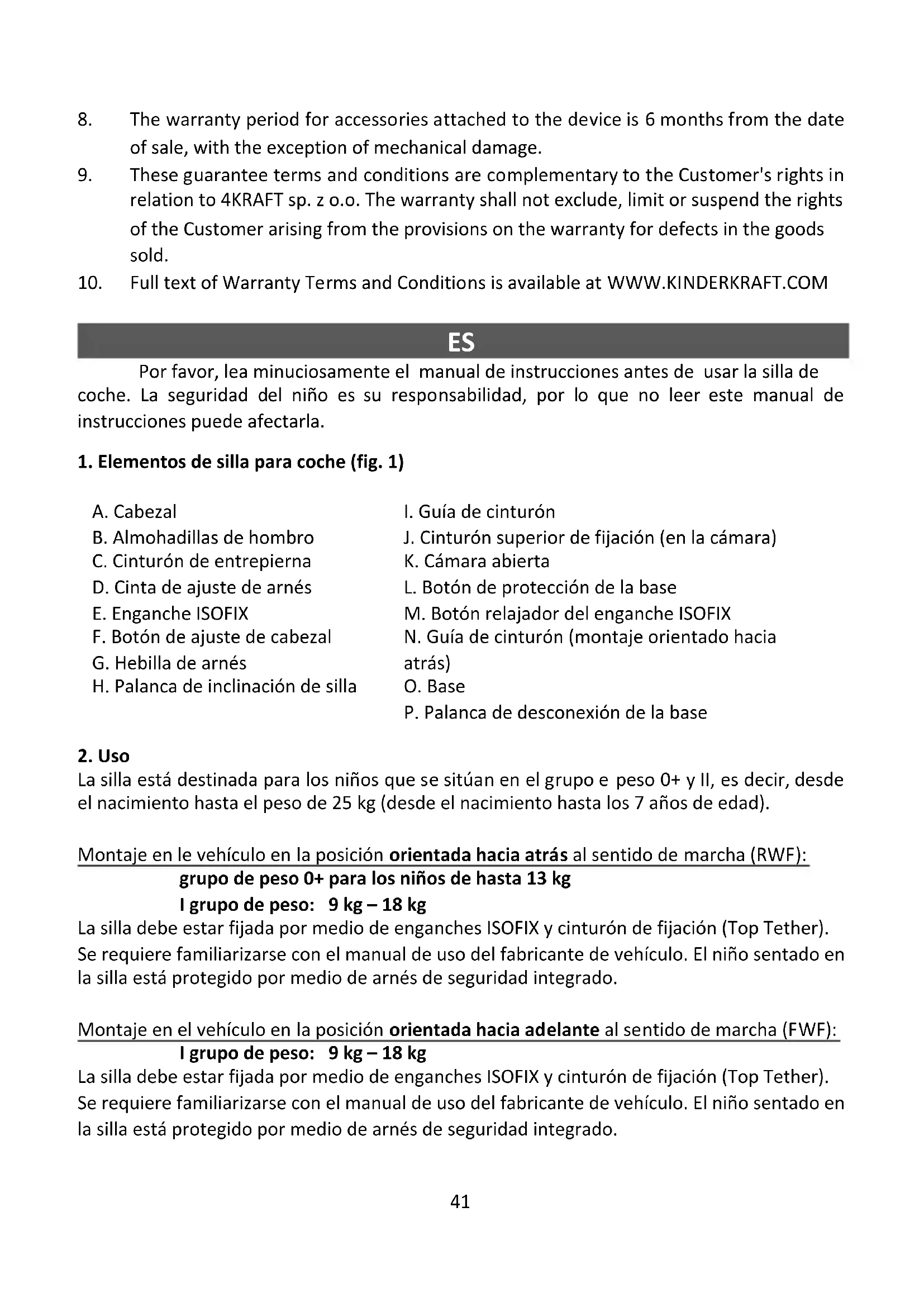 1. Todos los productos Kinderkraft están cubiertos por la garantía de 24 meses. El período