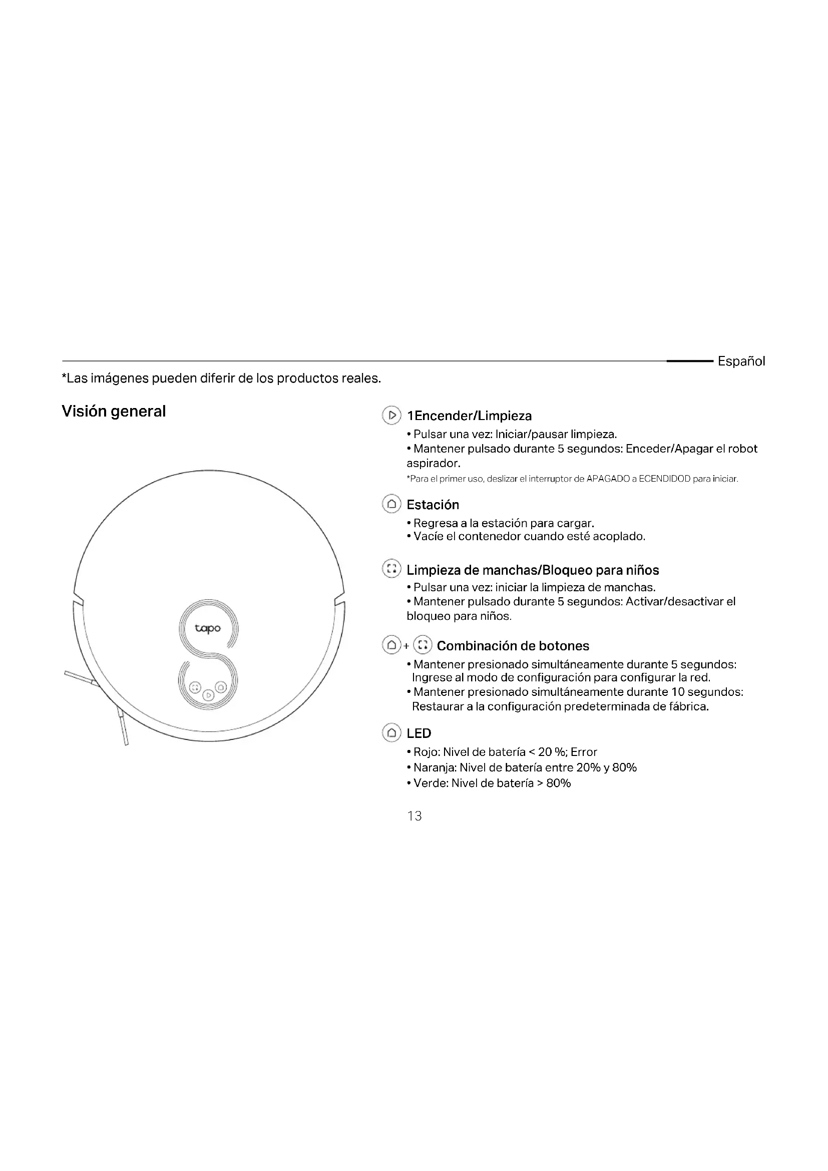 - Verde: Nivel de batería > 80% *Las imágenes pueden diferir de los productos reales.14 Español OFF