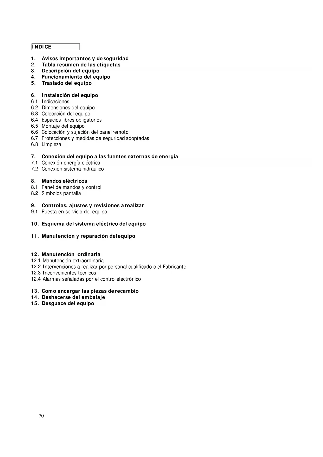 Desguace del equipo ÍNDICE Á71 Deseamos agradecerle la confianza que ha depositado en nosotros al adquirir un producto Uniblock. Le rogamos que lea atentamente este manual, preparado expresamente, con consejos y avisos sobre el correcto modo de instalación, uso y manutención de nuestro producto, para que pueda sacar el máximo provecho de todas sus características.