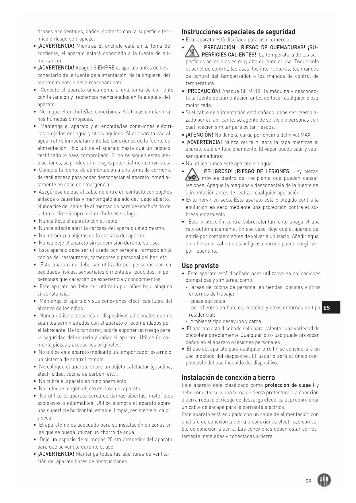 - Este aparato debe ser utilizado por personal formado en la cocina del restaurante, comedores o personal del bar, etc.