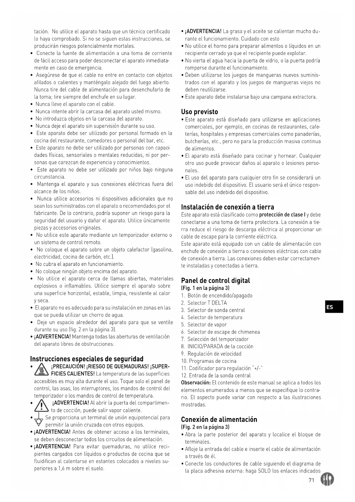 te instaladas y conectadas a tierra. Panel de control digital (Fig. 1 en la página 3)