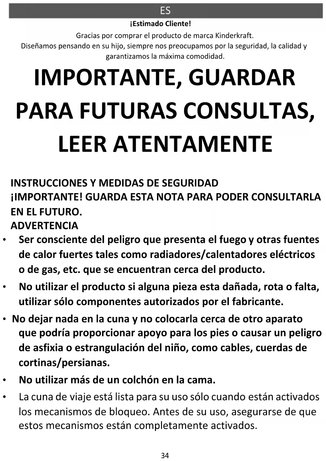 ¡Estimado Cliente! Gracias por comprar el producto de marca Kinderkraft. Diseñamos pensando en su hijo, siempre nos preocupamos por la seguridad, la calidad y garantizamos la máxima comodidad. IMPORTANTE, GUARDAR PARA FUTURAS CONSULTAS, LEER ATENTAMENTE