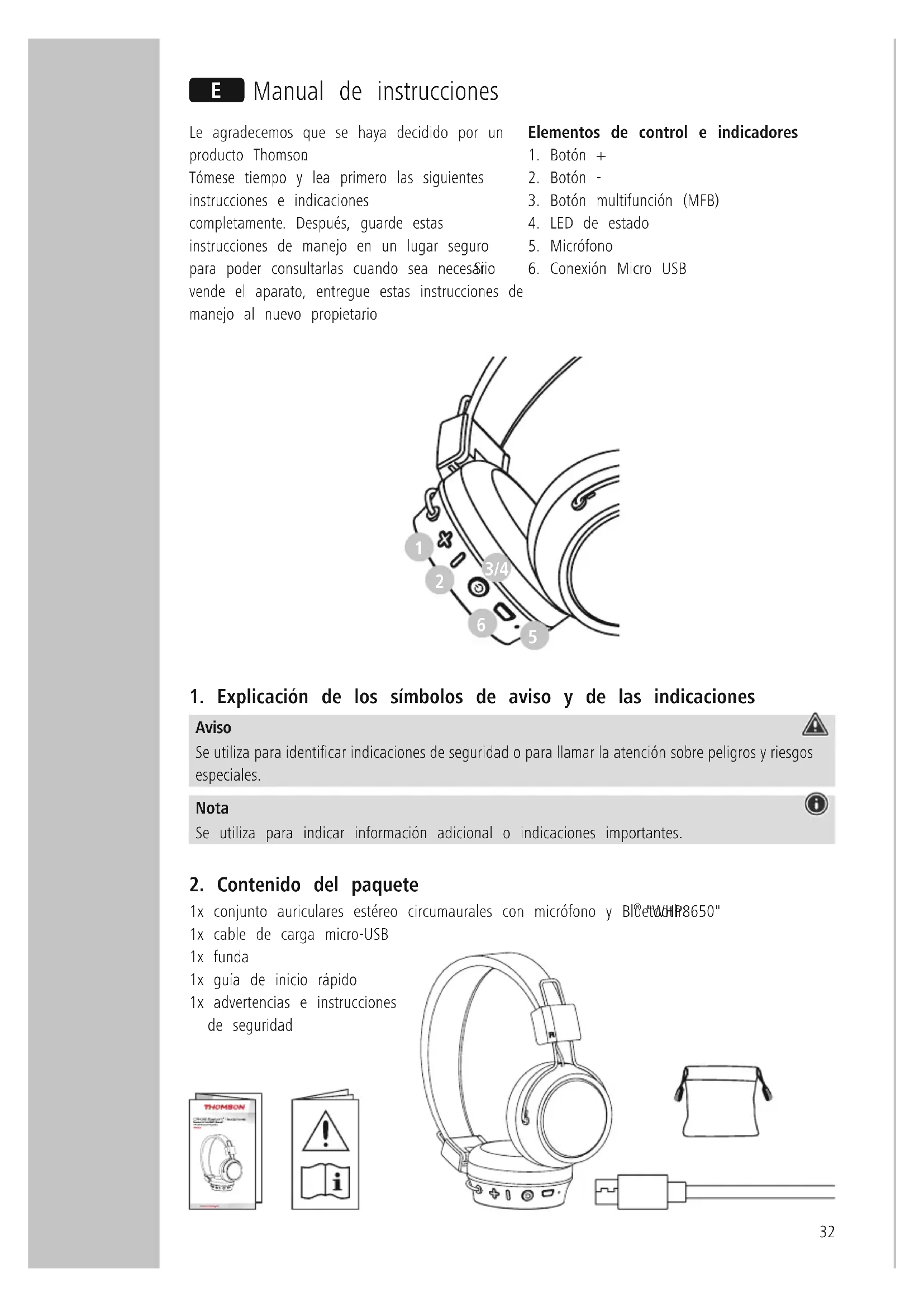 "WHP8650" 1x cable de carga micro-USB 1x funda 1x guía de inicio rápido 1x advertencias e instrucciones de seguridad E Manual de instrucciones