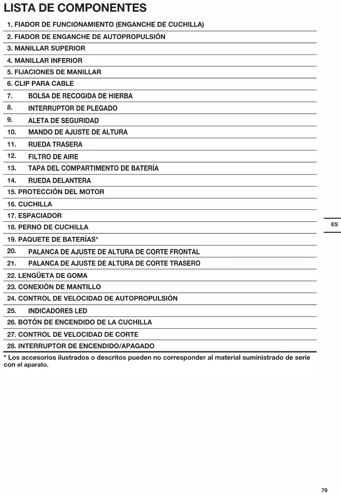- Los accesorios ilustrados o descritos pueden no corresponder al material suministrado de serie con el aparato.ES