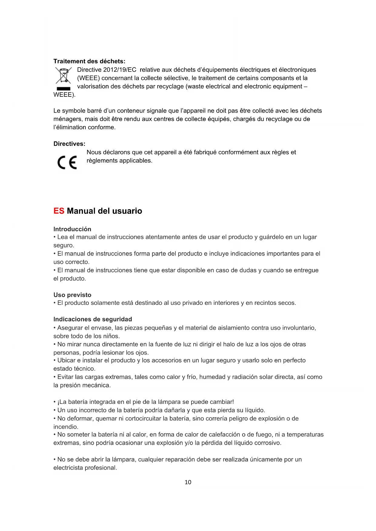 - El producto solamente está destinado al uso privado en interiores y en recintos secos. Indicaciones de seguridad