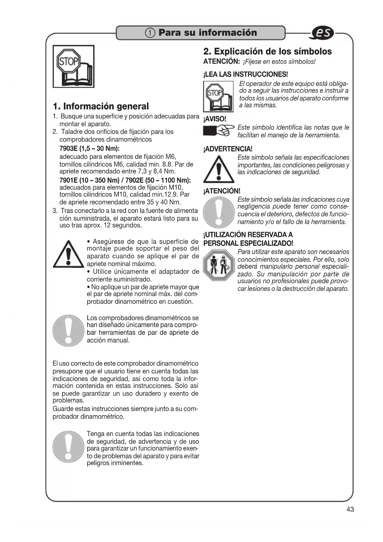probador dinamométrico. Tenga en cuenta todas las indicaciones de seguridad, de advertencia y de uso para garantizar un funcionamiento exen
