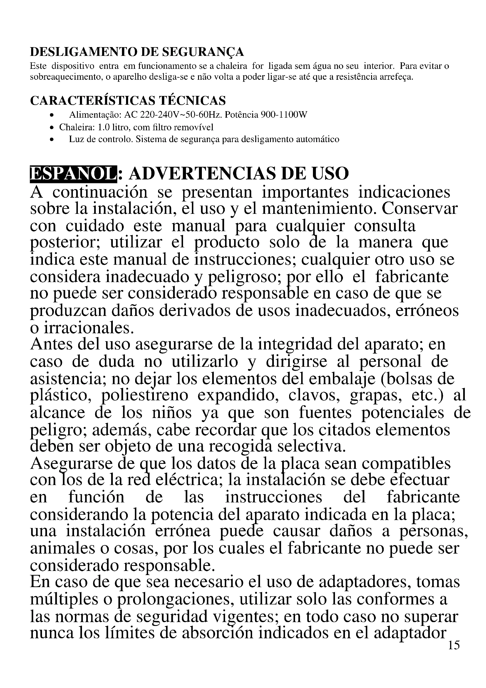 ESPAÑOL: ADVERTENCIAS DE USO