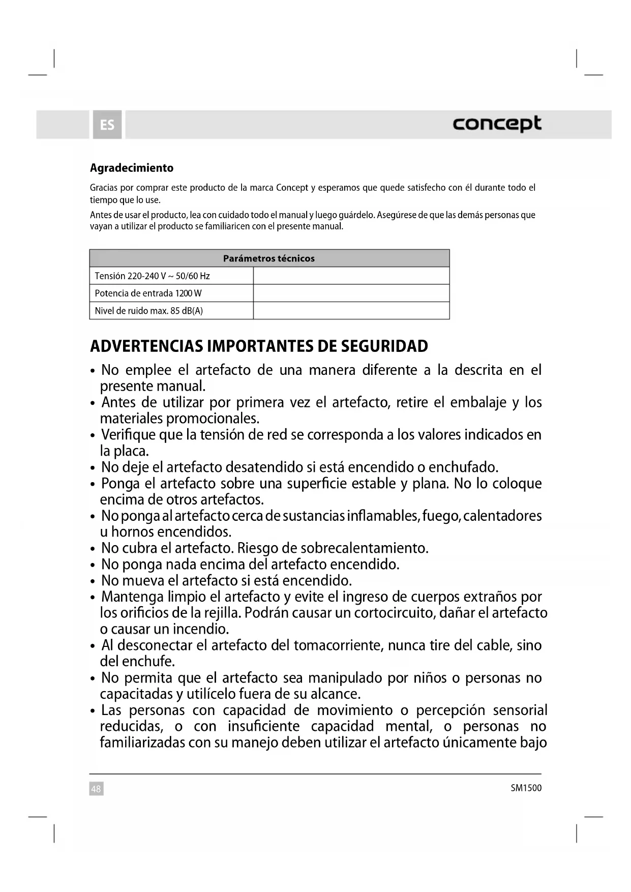 Encuentra gratis el manual del aparato SM1500 Concept en formato PDF.