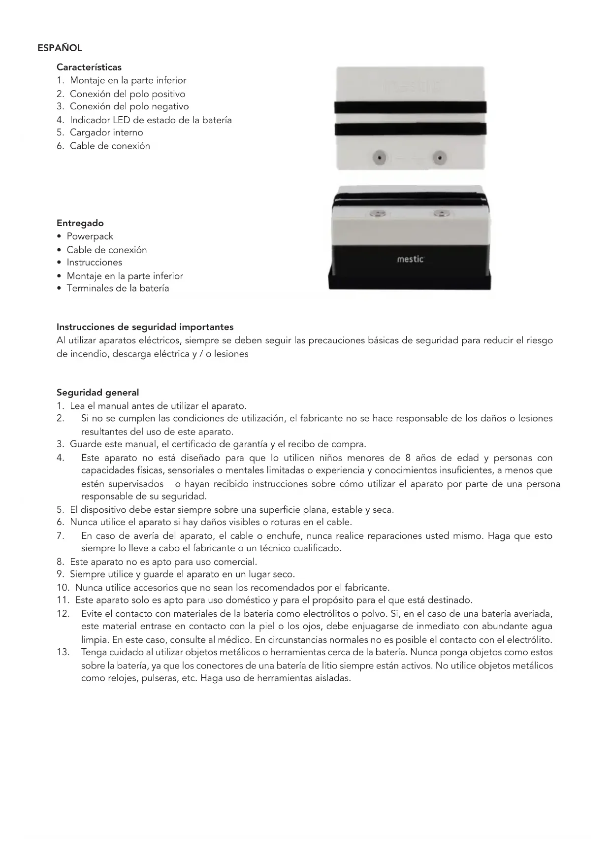 MPM-30 - Batería portátil Mestic - Manual de uso y guía de instrucciones gratis