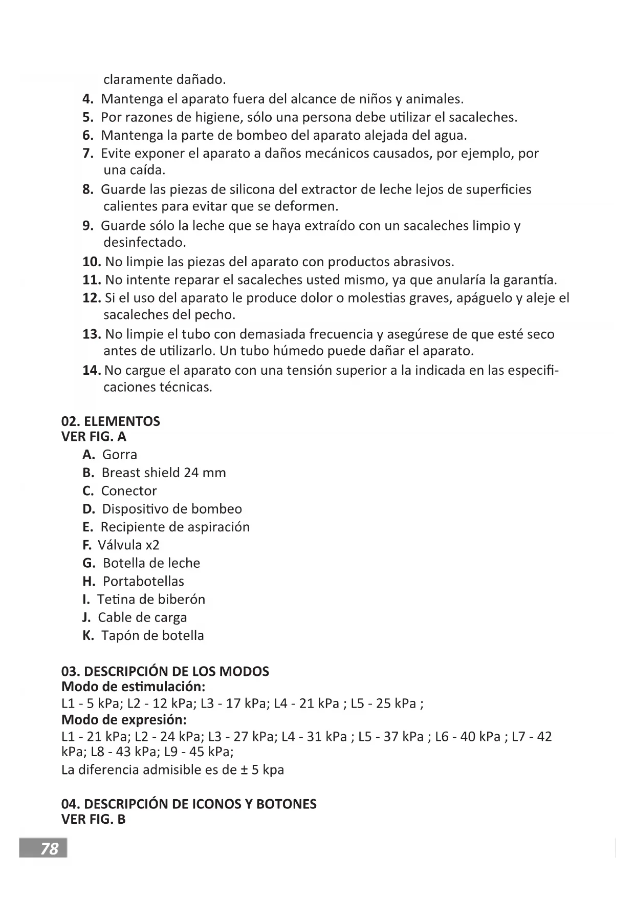 dañado. No ulice el extractor de leche si alguno de sus componentes está78 claramente dañado.