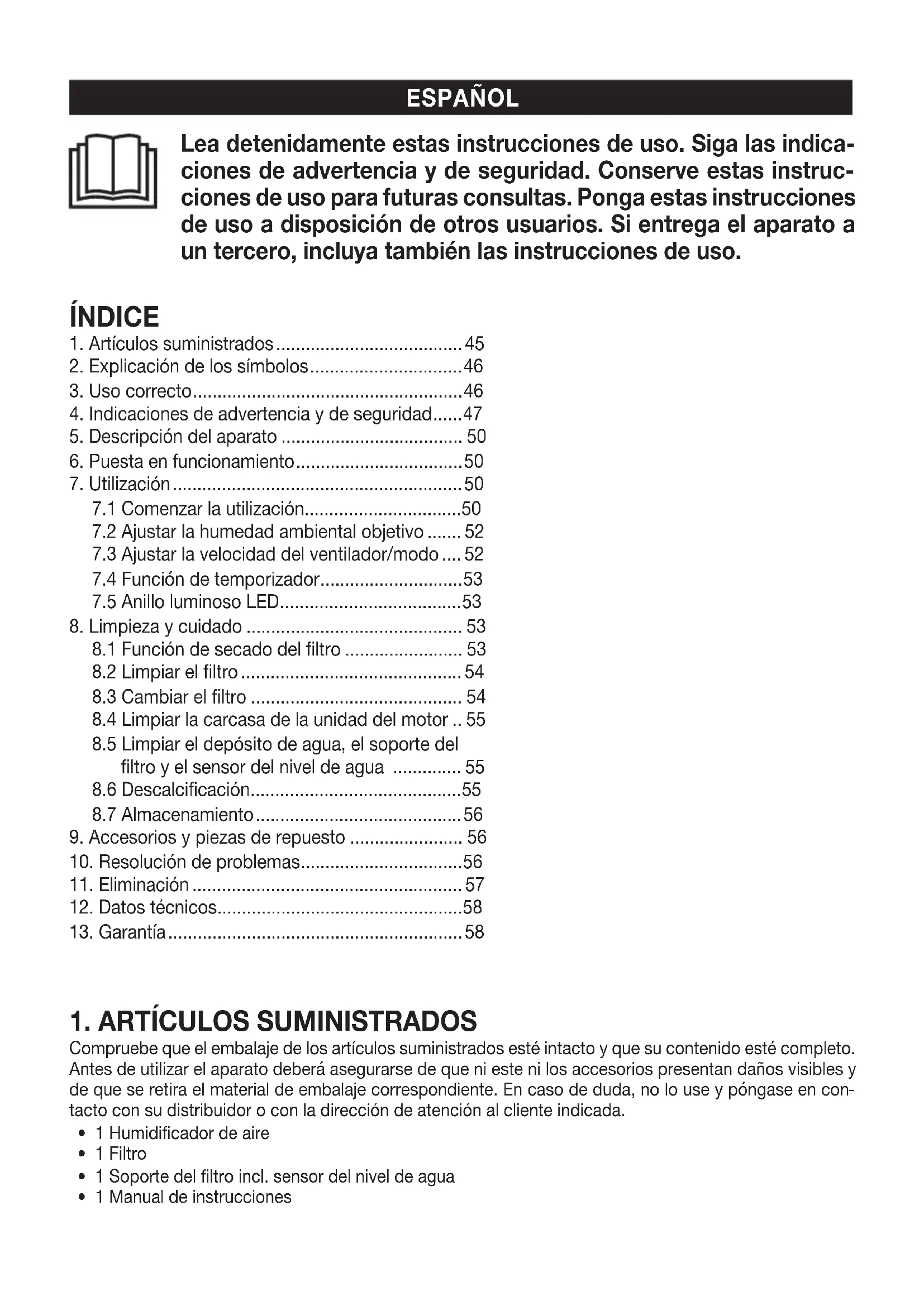 Este aparato ha sido diseñado exclusivamente para humedecer el aire en interiores. Utilice este aparato únicamente para el fin para el que ha sido diseñado y del modo indicado en las instruc