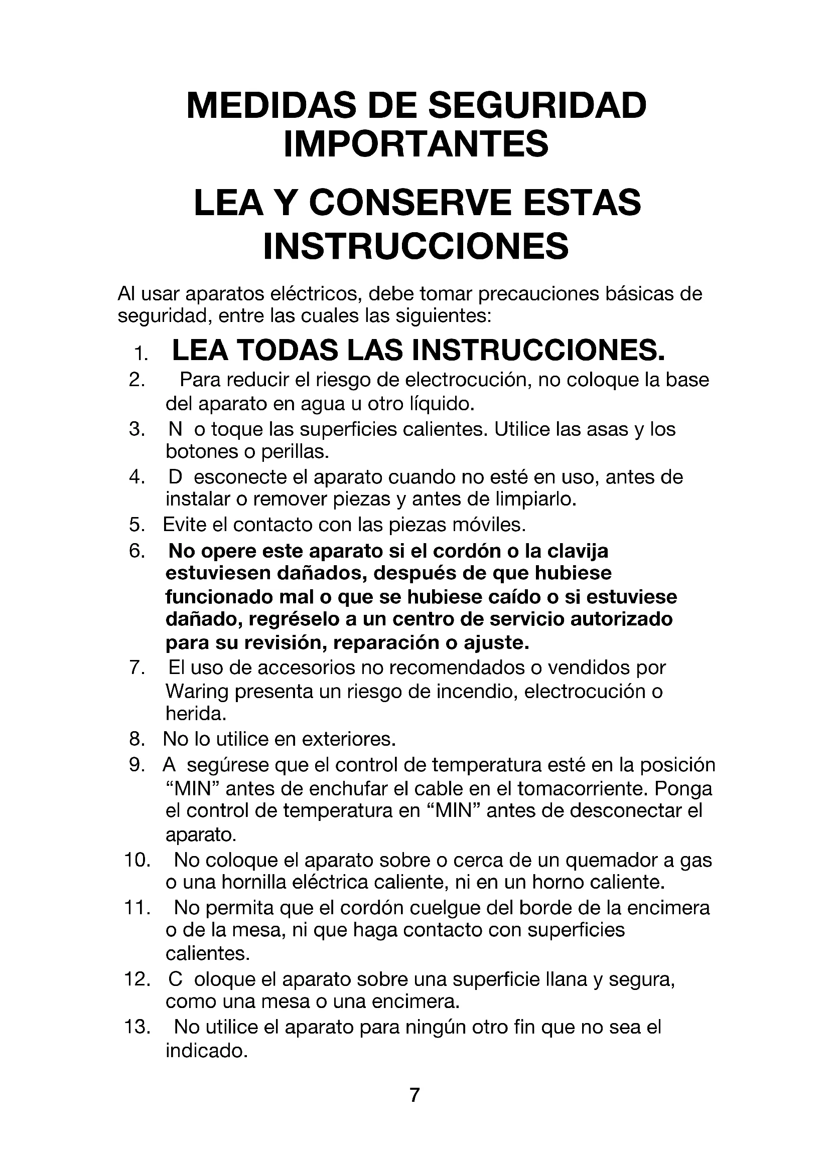 Waring presenta un riesgo de incendio, electrocución o herida.