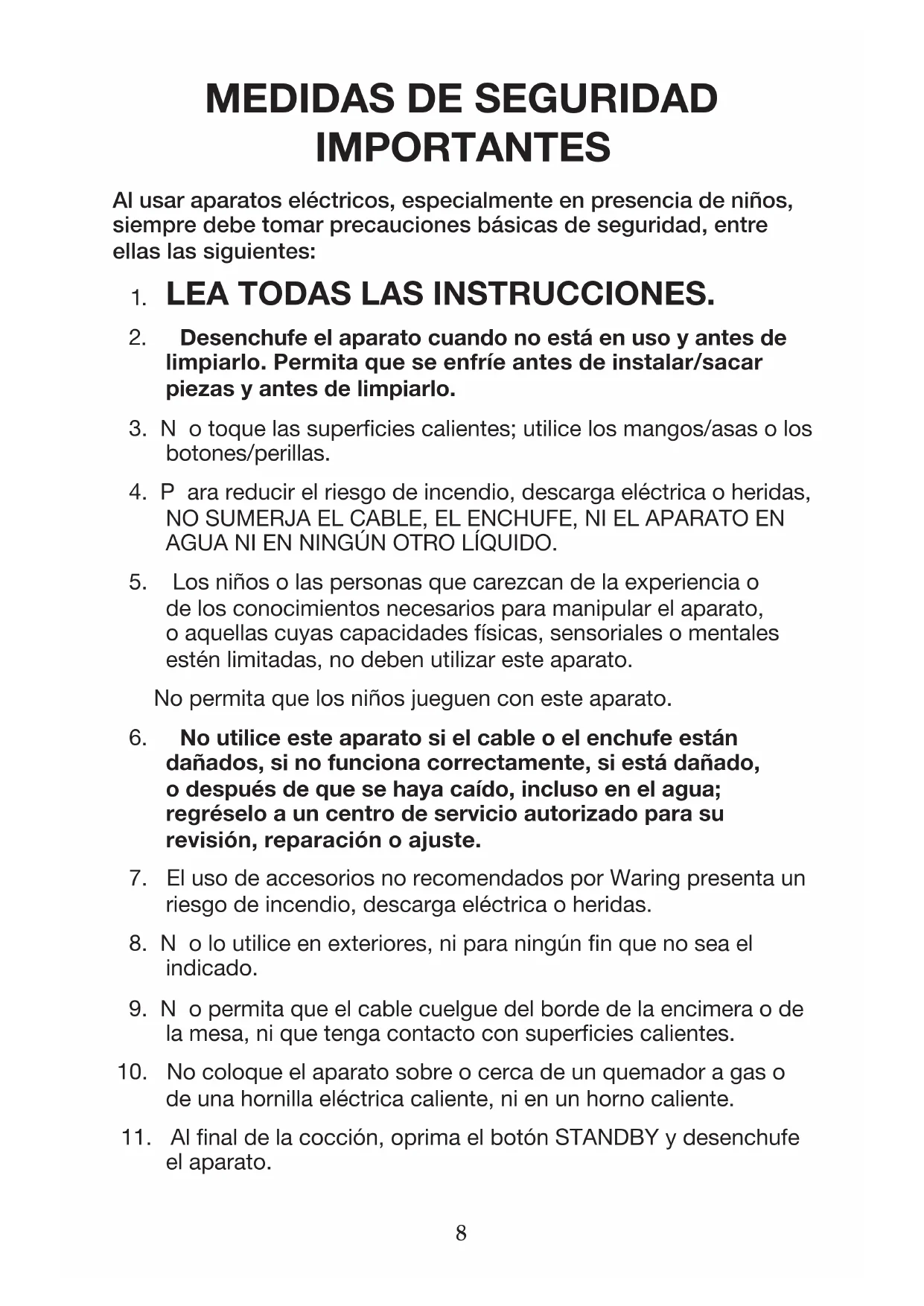 7. El uso de accesorios no recomendados por Waring presenta un