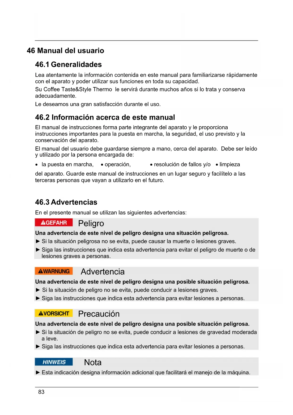 Lea atentamente la información contenida en este manual para familiarizarse rápidamente con el aparato y poder utilizar sus funciones en toda su capacidad. Su Coffee Taste&Style Thermo le servirá durante muchos años si lo trata y conserva adecuadamente. Le deseamos una gran satisfacción durante el uso.