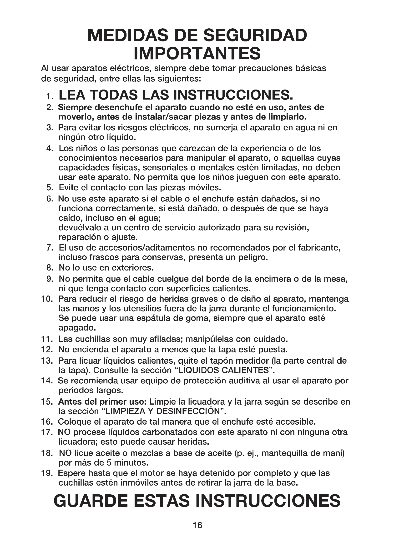 IMPORTANTES Al usar aparatos eléctricos, siempre debe tomar precauciones básicas de seguridad, entre ellas las siguientes: