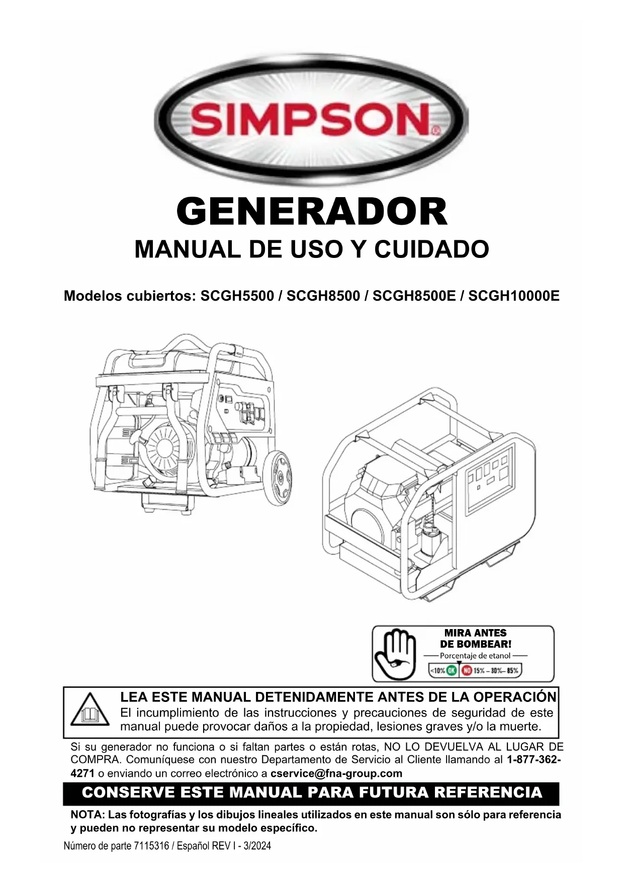 SCGH8500E - Generador Simpson - Manual de uso y guía de instrucciones gratis