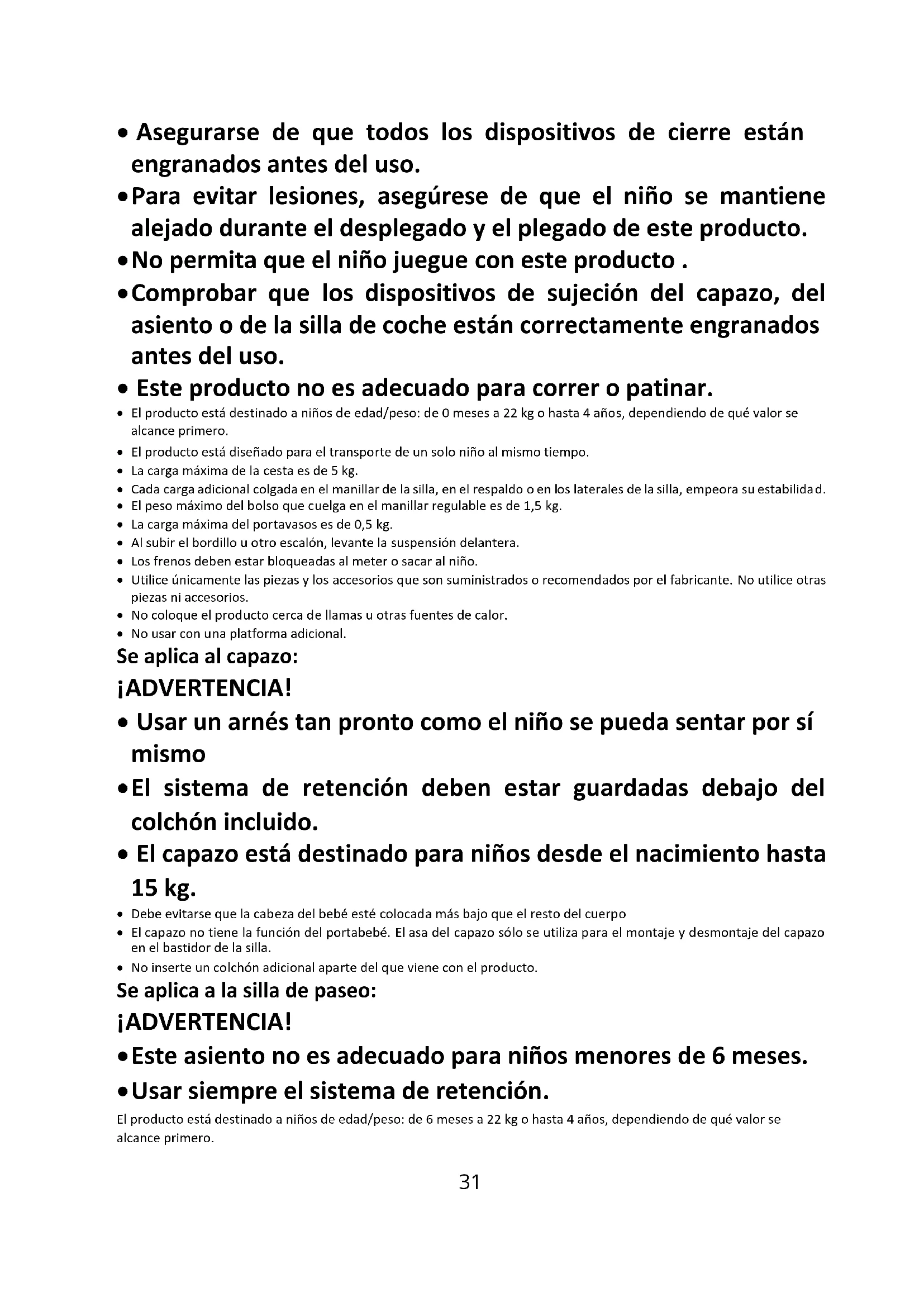 - No usar con una platforma adicional. Se aplica al capazo: ¡ADVERTENCIA!