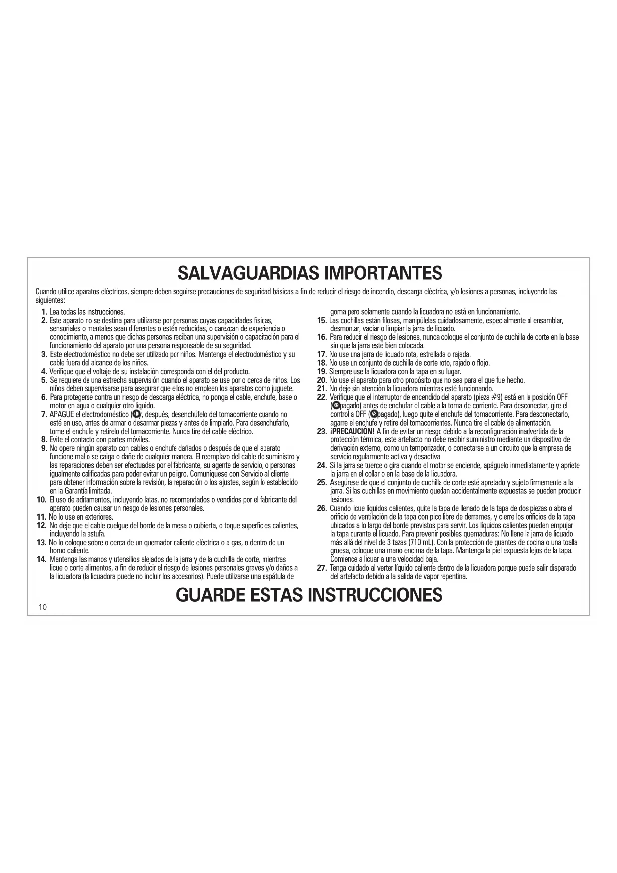 GUARDE ESTAS INSTRUCCIONES11