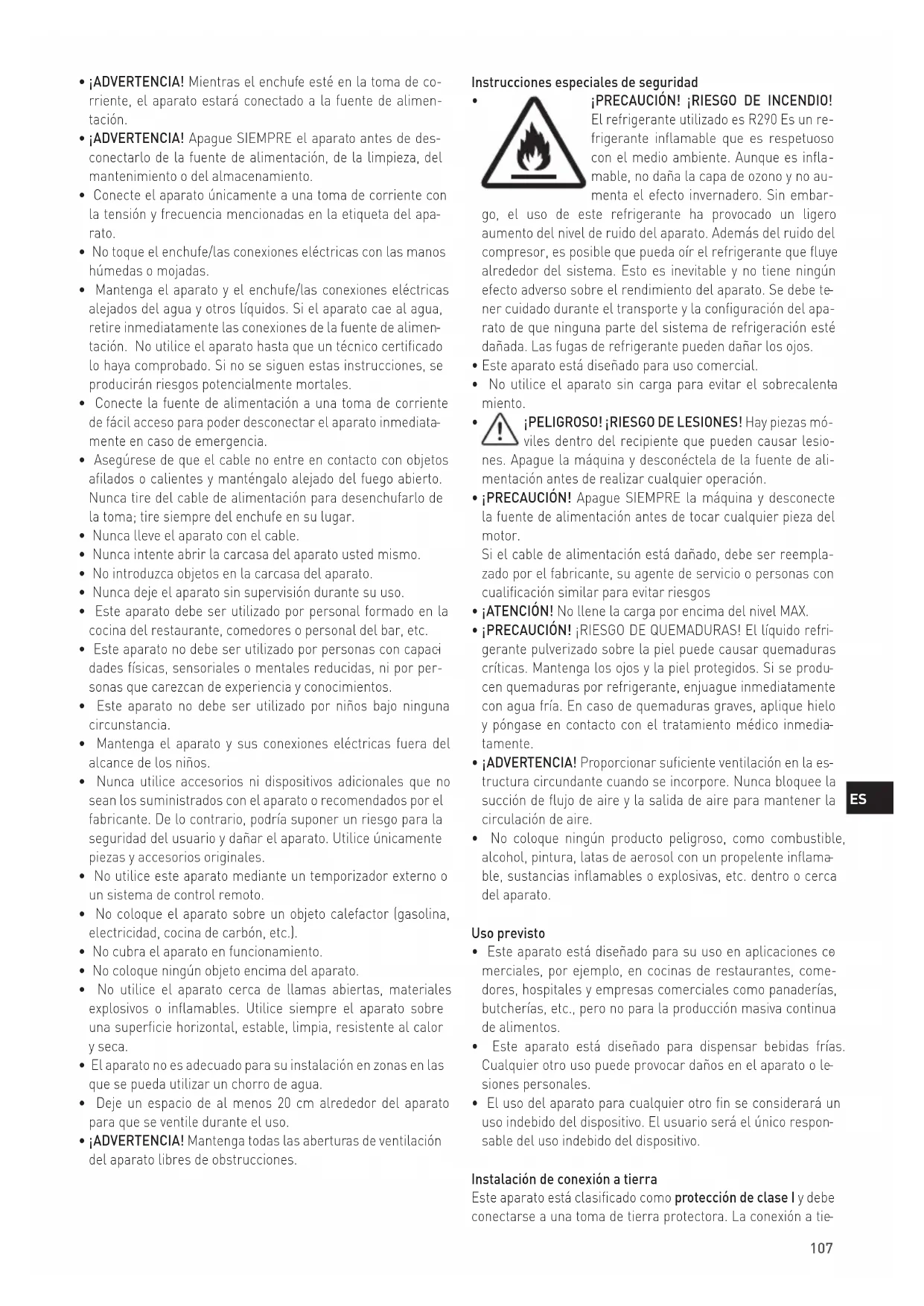 - Este aparato está diseñado para dispensar bebidas frías. Cualquier otro uso puede provocar daños en el aparato o le