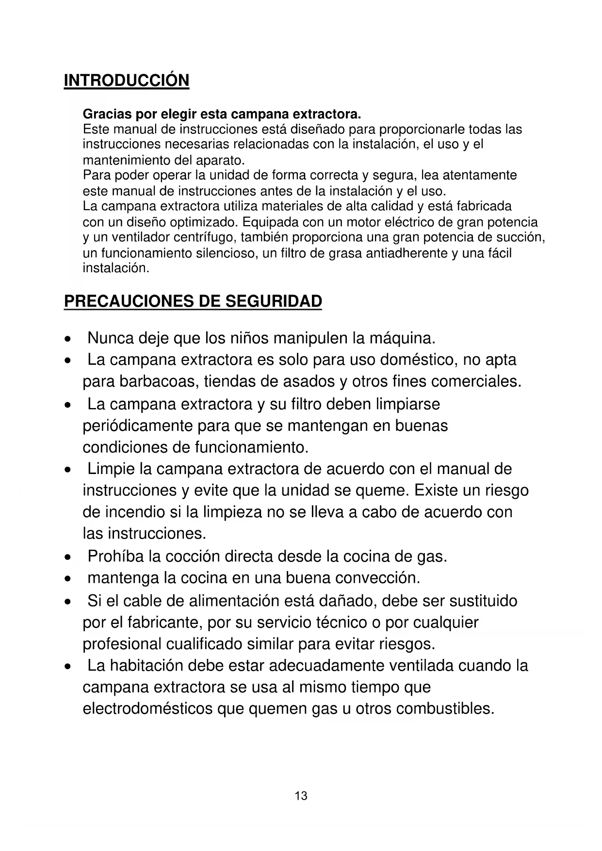 - La campana extractora es solo para uso doméstico, no apta para barbacoas, tiendas de asados y otros fines comerciales.