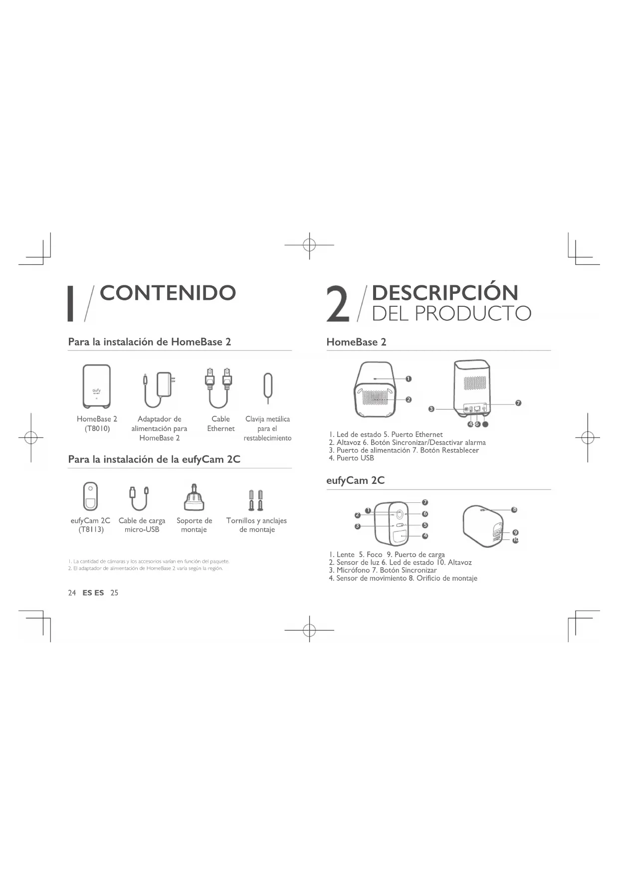 Montaje de la cámara Carga de la eufycam 2c24 ES ES 25 DESCRIPCIÓN DEL PRODUCTO HomeBase 2