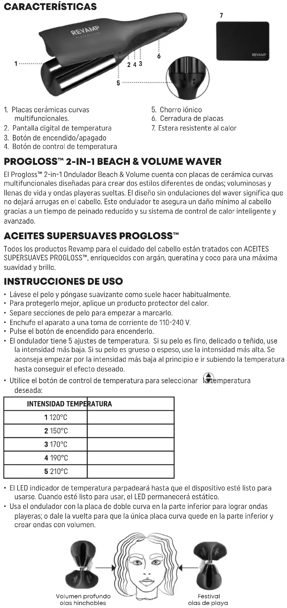 Progloss 2-in-1 WV-3000 - Fer a boucler Revamp - Manual de uso y guía de instrucciones gratis