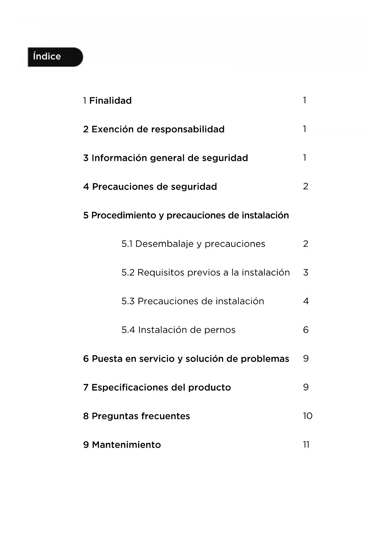6 Puesta en servicio y solución de problemas 7 Especificaciones del producto 8 Preguntas frecuentes 9 Mantenimiento