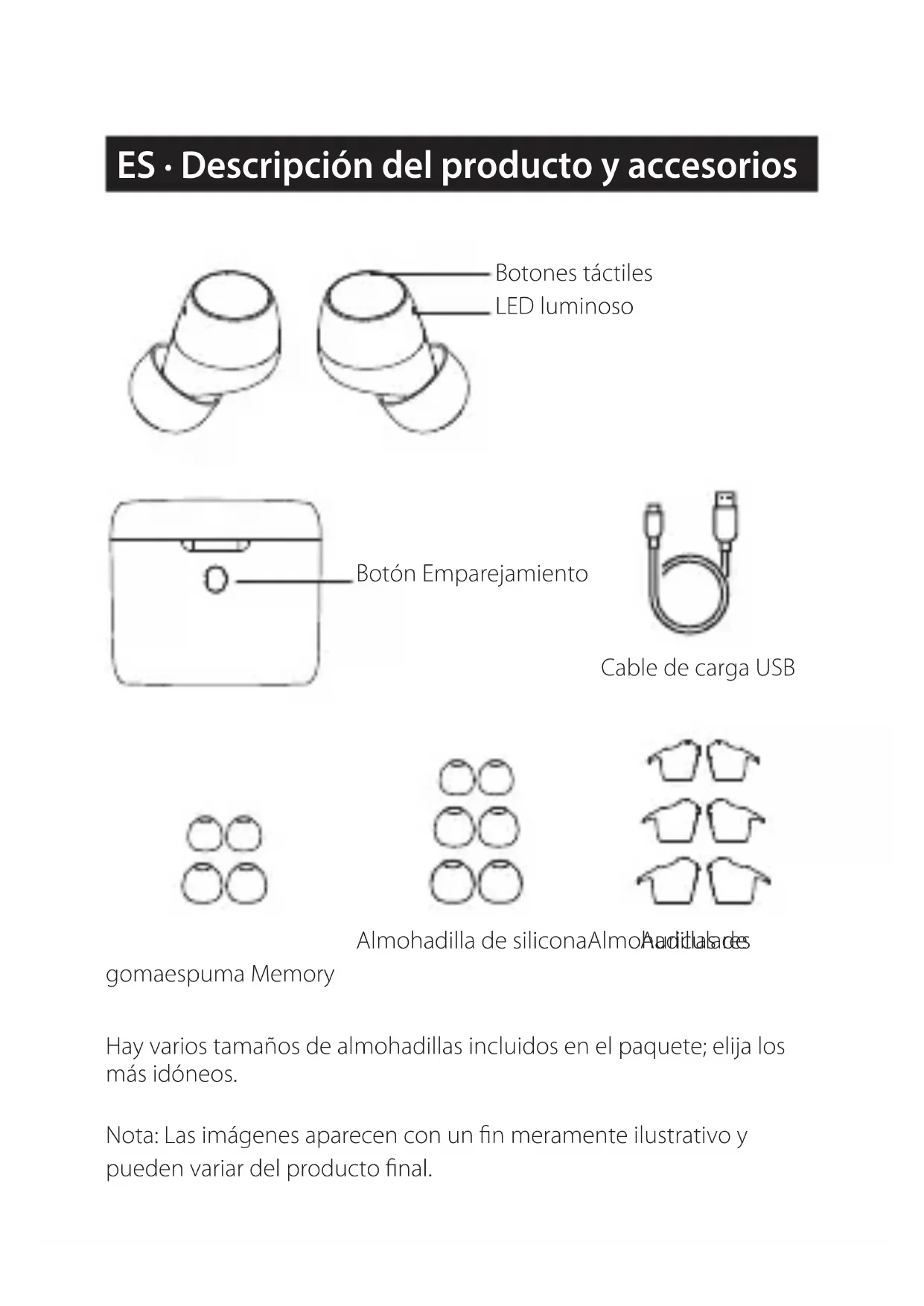 - Se apaga automáticamente cuando se coloca en el estuche de carga. ● Función TWS para sincronizar simultáneamente los auriculares izquierdo y derecho. Los auriculares izquierdo y derecho vienen con la sincronización de TWS de fábrica. Si no se conectan, siga los pasos siguientes para volver a sincronizarlos: